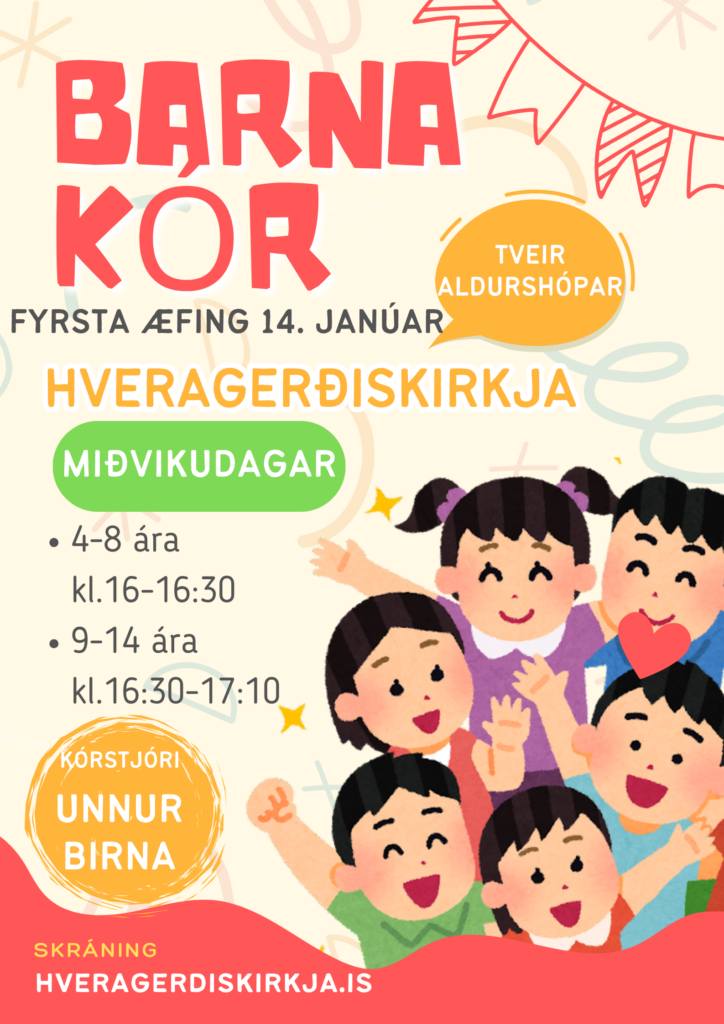 Skráning í barnakór fyrir vormisseri 2026 (hlekkur fyrir neðan mynd)